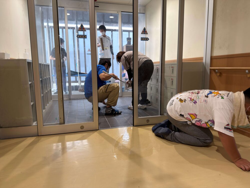 利用者さんが中心となって、作業スペースや休憩室、トイレ、玄関などを丁寧に清掃しています🧽。