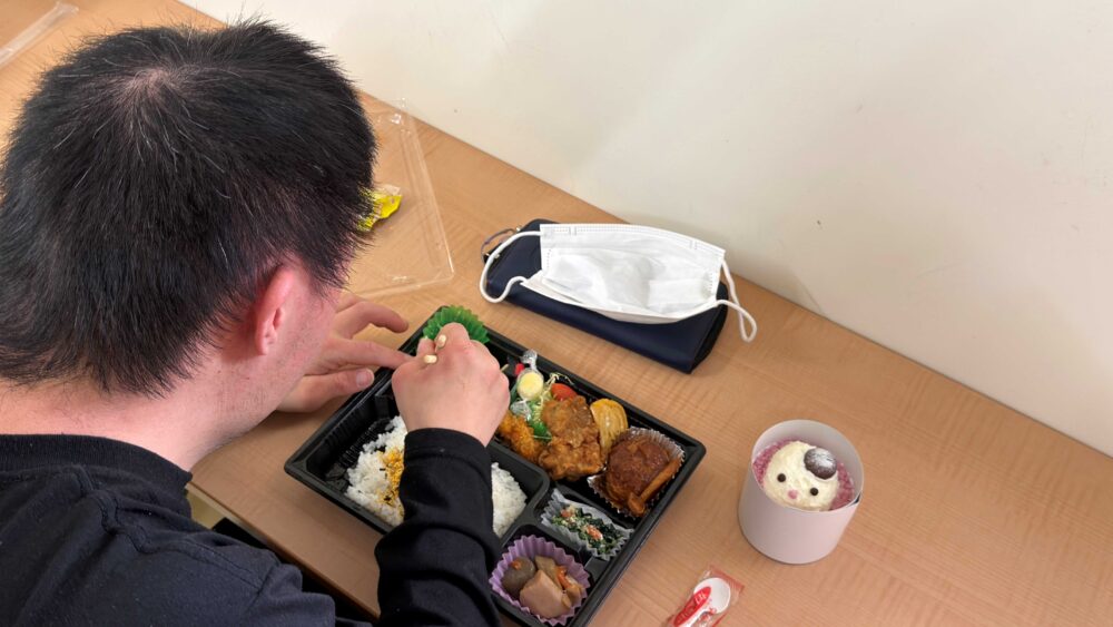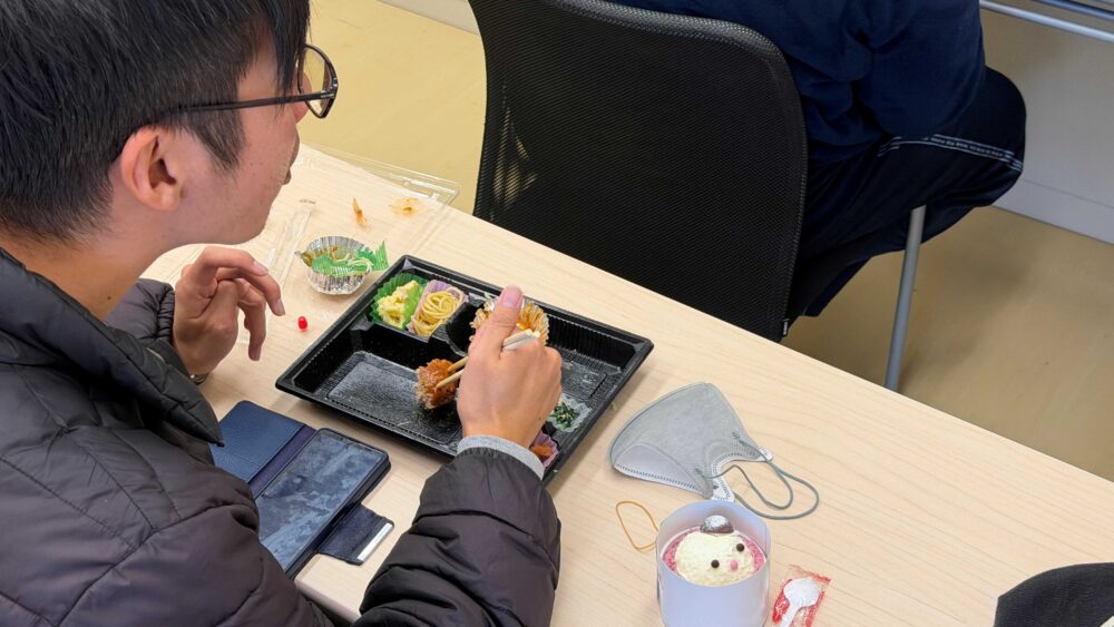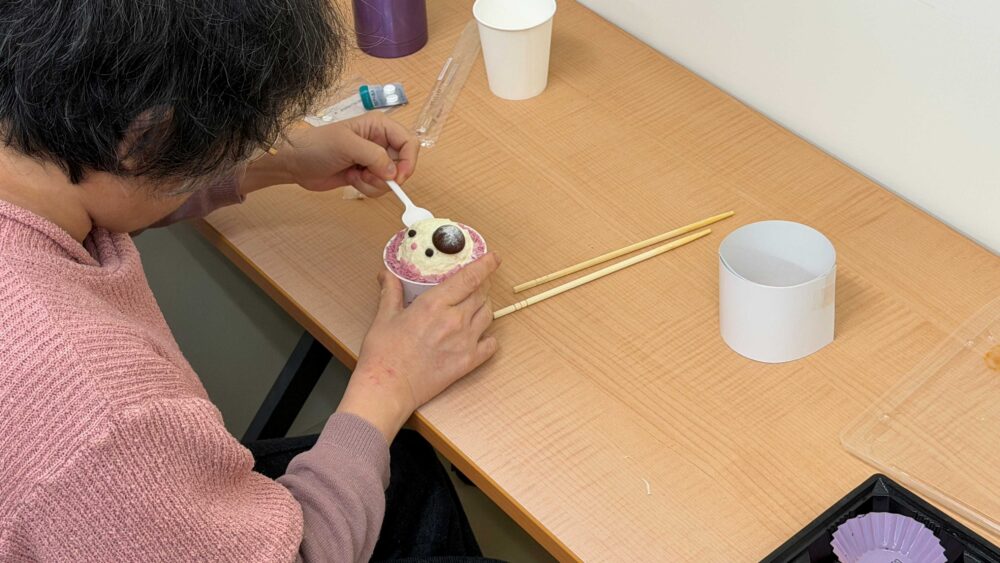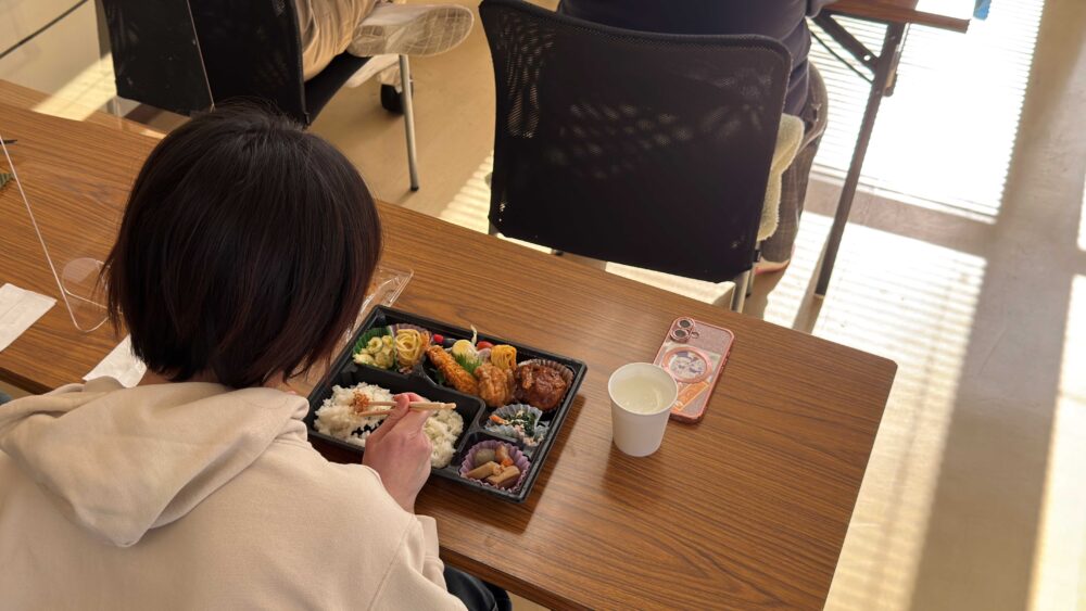 この日は地域の事業者の方のご協力による食事とケーキを用意し、いつもの作業とは少し違う、季節を感じられるひとときを過ごしました❄️