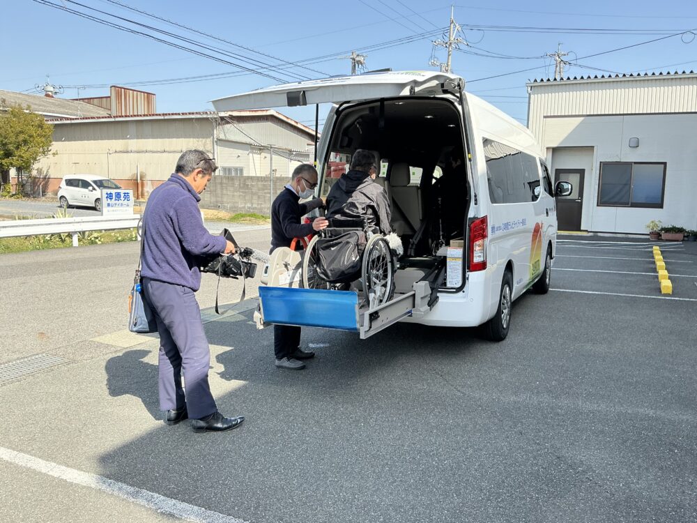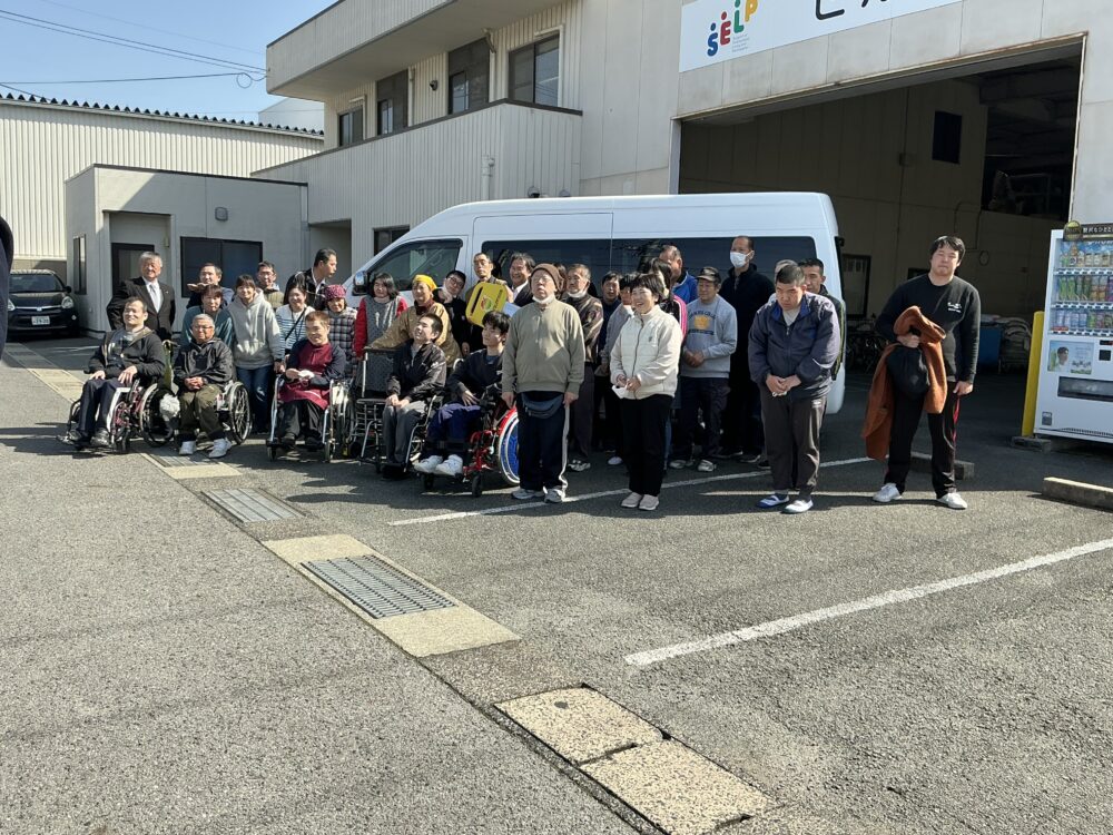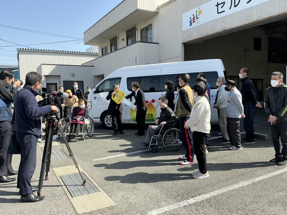 当日は多くの利用者さんが参加され、新しい車両を前にみんな大喜び。現在使用しているリフト付き車両は走行距離が25万キロに近づいており、今回の寄贈により、送迎や外出支援をより安全・安心に行うことが可能になります。